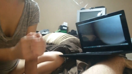 Подрочила своему парню на порнуху