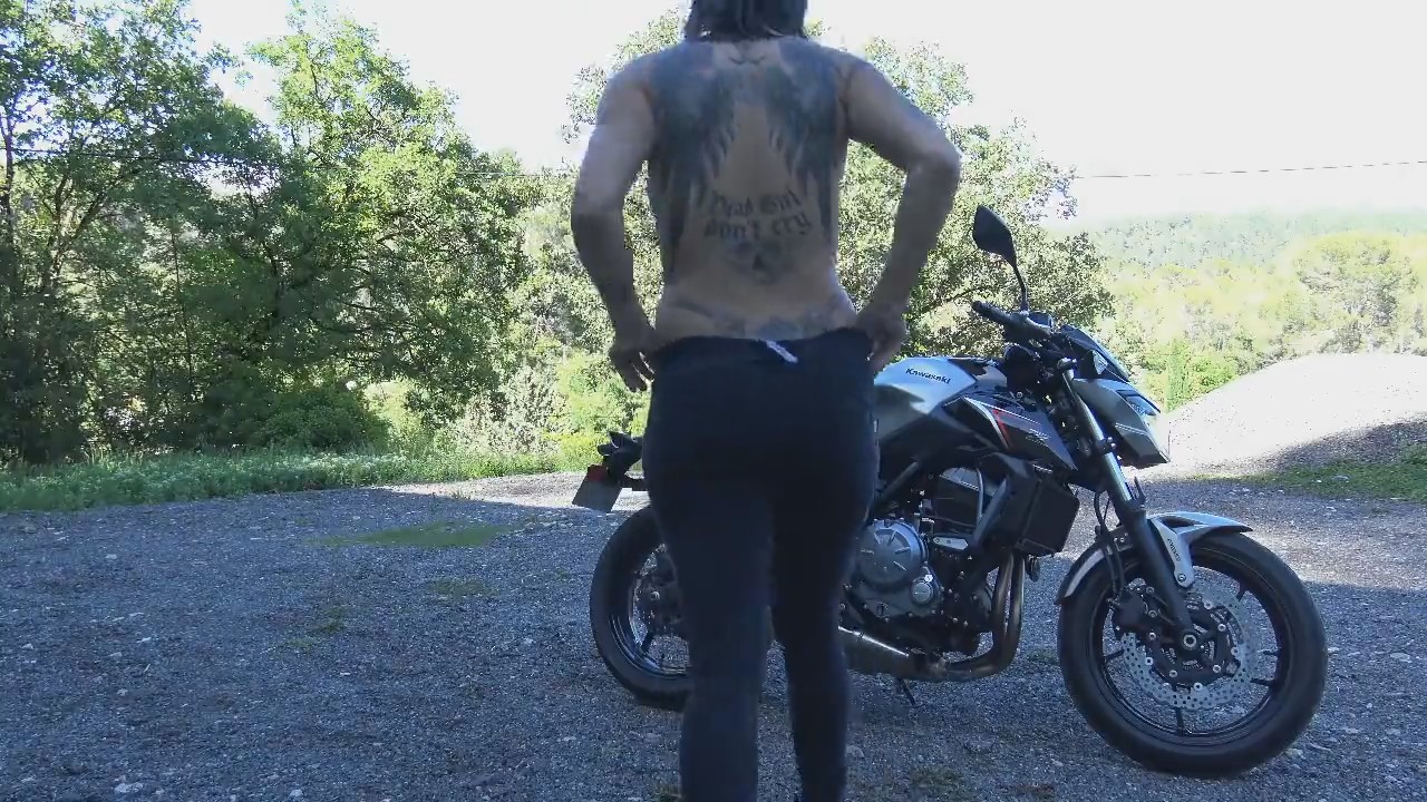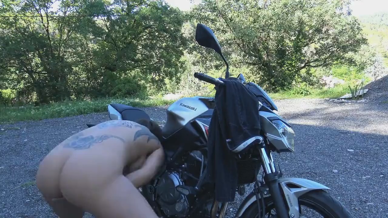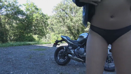 Чем занять себя во Франции, если ты девушка? Первым делом нужно угнать у парня мотоцикл и куртку, прямо как в фильме Терминатор. Но если бы это было все, то было бы совсем не интересно, не так ли? Дело в том, что брюнетка протащила с собой еще и большой дилдо на присоске, а затем уехала подальше на какую-то лесную поляну. Оставив байк на подножке, француженка прилепила к баку резиновый хуец и решила на нем попрыгать, но вот подножка не то чтобы особо держала бабу и мотик одновременно, поэтому впоследствии она все-таки решила долбить себя рукой.