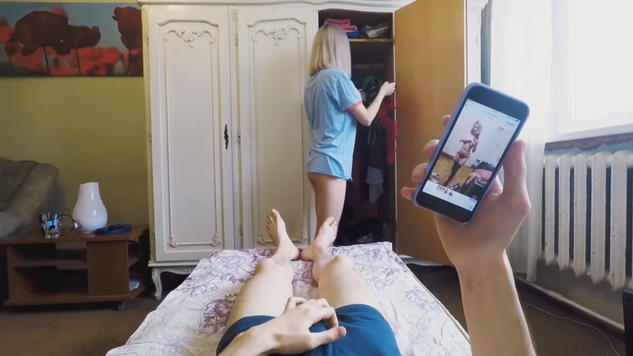 Старшая сестра - это объект ненависти и обожания одновременно, даже если у вас разница всего лишь в год. И если у вас не такое тесное общение, как должно быть, то рано или поздно вы подсознательно начнете воспринимать ее как женщину. У этого парня еще только первая стадия - он просто решил вздрочнуть на ее голые фотки. Но к счастливому совпадению, она сама в этот момент зашла в комнату за одеждой, и увидев, чем тут занимается ее братец, сама предложила свои услуги по мастурбации, от чего у него полностью снесло башню, а той и весело - даже живот себе обкончала.