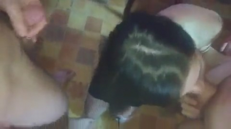 Ярая противница института семьи сосет сразу два члена у приятелей, иногда приходящих отдохнуть от семьи. Девушке очень нравится дарить минета, сосала бы больше в количестве, если бы было у кого. А парням только в радость иметь своевременную помощницу в получении удовольствия. Худенькая брюнетка как пылесос засасывает ротиком шкурки от залупок, а потом ложится на кухонный пол и начинает мастурбировать сама, ожидая когда гость надрочит хуй на нее и выплеснет все, что есть в яйцах.