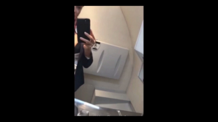 Пассажиры и не догадываются, чем занимается стюардесса их класса в туалете самолета. Озвучив технику безопасности во время полета она сразу же направилась в уборную, где записала коротенький ролик в прямом эфире, естественно, вертикально. В воздухе качество связи плохое, поэтому видны редкие подлагивания. Бортпроводница первым делом показала спелые сисечки, выглядывающие из черного лифчика, после чего, любуясь собой же в зеркале, начала шликать, поднося камеру телефона близко к писе. Чтобы не создавать очередь, пришлось поставить камеру напротив и довести себя до оргазма, что получилось весьма быстро. Закончив дело, брюнетка попрощалась и, не выключая трансляции, начала одеваться на выход.