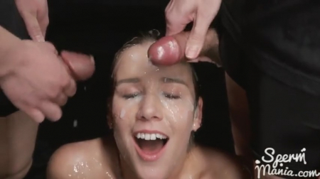 Она и сама не может поверить, что сейчас целая толпа мужиков будет кончать ей на лицо. Она хоть и любит сперму, но с таким грузом на мордочке будет не открыть глаза, и придется постараться чтобы не наглотаться соленой семенной жидкости или не вдохнуть носом. Как по команде, ребята ринулись тыкать хуями в лицо сидящей на полу перед ними улыбчивой девушке, которая пока дрочила им члены, хоть это им не требовалось, посчитала количество участников по пенисам. По несложным расчетам, их сразу десять человек, готовых соргазмировать уже сейчас. Весь десяток залил лицо спермой милой красотке, наслаждаясь своим творением за спиной оператора.