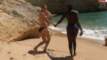Парень загорает на пляже с двумя симпатягами - белой и чернокожей. Девчонки начали натирать друг друга маслом от загара, а молодой человек снимал их на камеру. По мере втирания в кожу масла, движения девушек становятся все более страстными и наглыми. Ведь от прикосновений обе телочки невероятно возбудились. Да что там, они возбудили и общего друга. Тогда троица уходит с пляже в небольшую пещеру (находящуюся не неподалеку) и трахает шлюшек по очереди.