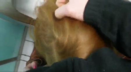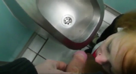 Лютая рыжая извращенка отправилась со своим бойфрендом в общественный сортир, который даже не имеет кабинок. Время позднее, сюда никто не зайдет. Она прямо в одежде села рядом с писсуаром и, когда ее приятель начал ссать в толчок, подставила язык для золотого дождя, отчего желтоватая жидкость перестала долетать до нужного места и пролилась на пол и рот девочки-сосочки. Следом она заглотила постепенно напрягшийся пенис, работая глоткой до максимума, отчего стала подкашливать и поперхнулась. Грязная хуесоска просто обожает подобные места, где, во-первых, есть страх спалиться, во-вторых, противно воняет и одно прикосновение к сортиру вызывает мурашки по коже с отвращением.