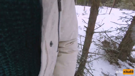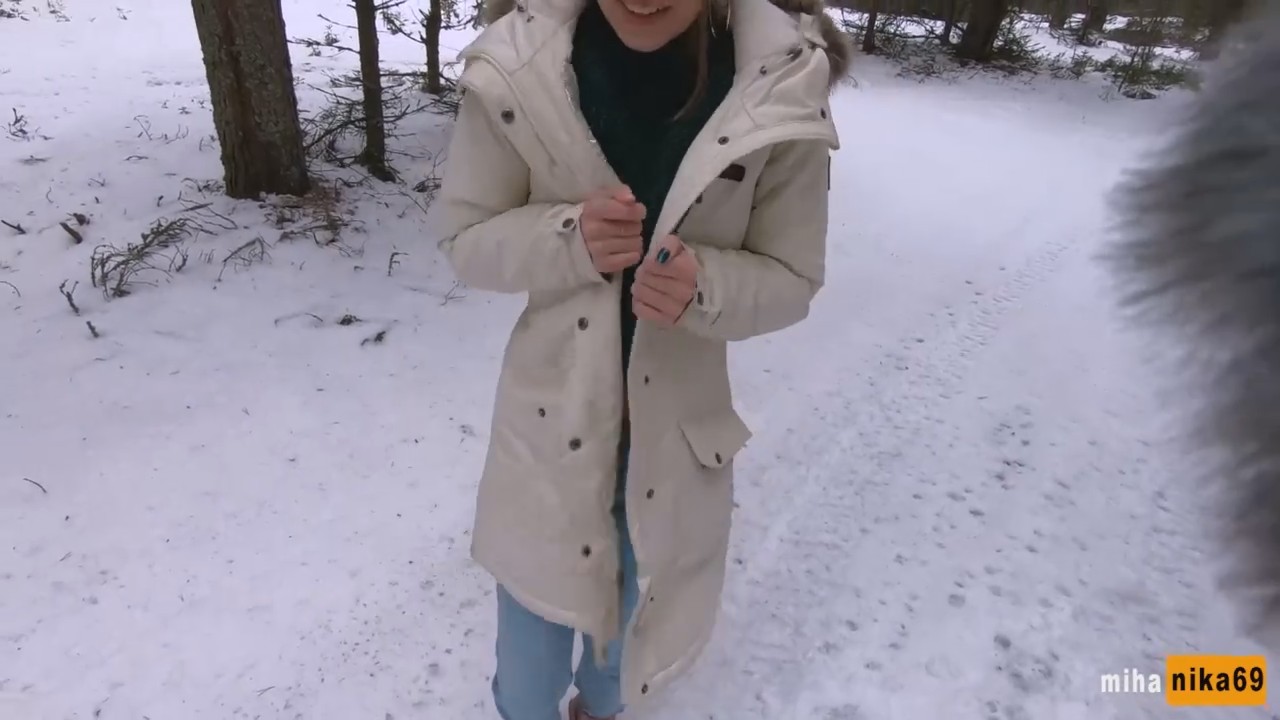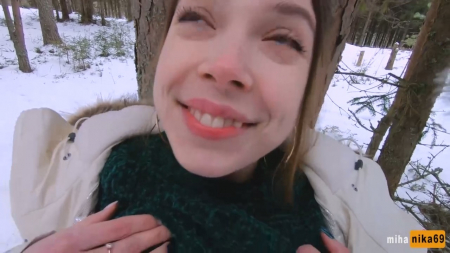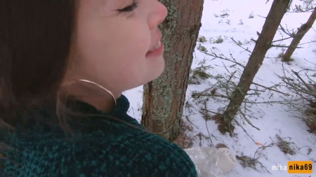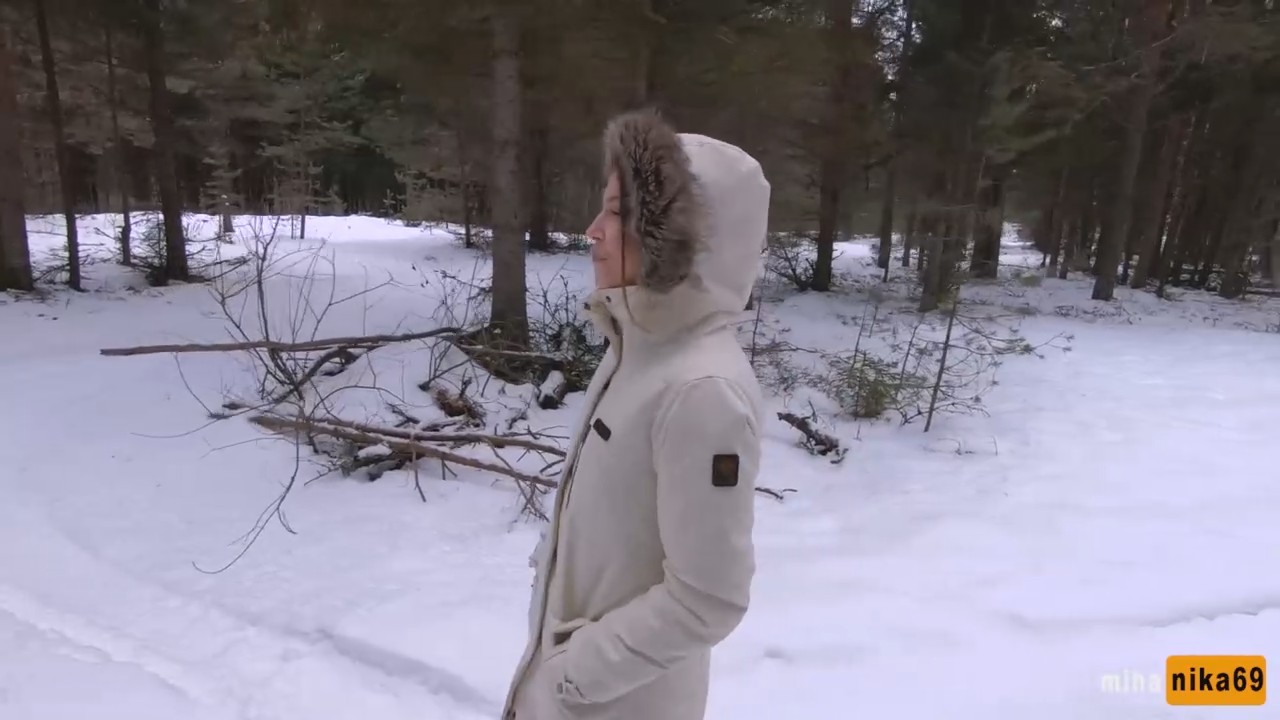 Еще на пути в лес за деревню девушка начала вести съемку из машины. Она показала аппетитные сиськи и милое личико, в попытке заинтересовать будущего зрителя, коих у пары становится больше с каждым днем, причем большая часть не соотечественники, а зарубежные поклонники, помогающие пожертвованиями и выкупом приватных видео. Девушке повезло меньше всего - ей пришлось снять куртку и почти раздеться, чтобы спутник имел доступ к телу. Адреналин, подскочивший в крови, не дал замерзнуть малышке и она быстро почувствовала себя в своей тарелке, оставшись погулять с обконченным личиком.