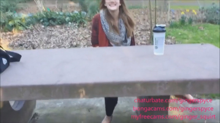 Холодная осенняя погода, повылазили онанистки и прочие извращенки. Одну из таких могли видеть счастливчики, гулявшие по общественному парку, в котором расставлены лавочки со столами для возможности передохнуть. Девушка спрятала ноги под стол и разорвала тонкие леггинсы, начав мастурбировать. Ее заводит легкий эксгибиционизм, когда кто-либо может случайно спалить мастурбирующую незнакомку. Снимает на камеру приятель, являющийся заодно охранником и личным телохранителем, ведь может попасться извращенец, насильник и прочий криминальный элемент. Сученька буквально через пару минут полила травку сквиртом, а после отправилась домой с разорванными штанишками.