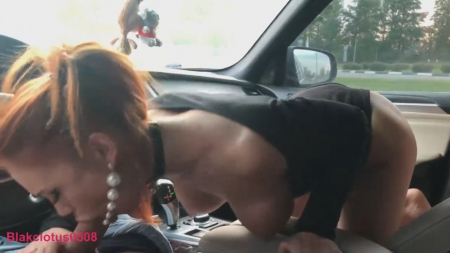 Парочка остановилась на парковке, подальше от основной дороги и других людей. В тачке телочка стоя коленками на пассажирском сидении попкой в сторону окна, а головой рядом с коробкой передач, с голыми сиськами отсасывает бойфренду, катающего сегодня на bmw. Рыженькая не просто старается, она работает только ротиком, не применяя руки, только чтобы придержать ствол полностью в вертикальном состоянии. Делать приятно у девушки хорошо получается, особенно если судить по тяжелым вздохам парня. Не останавливая голову, чикуля получила порцию спермы за щеку, пролив ненарочно на лобок любимого, оставив остальное на языке.