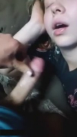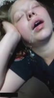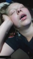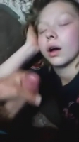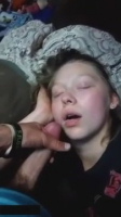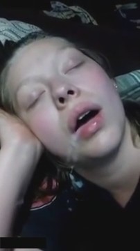 Парень с подругой крепко выпил спиртного и она рубанулась спать, оставшись до вечера. Слишком уж крепко она уснула. Когда пришло время будить, не удалось даже чуть привести в сознание упоротую дурочку. Чувак прошел играть в видеоигры, а потом подумал: а почему бы не подрочить хуй на ее еблет? Он заснял самый последний момент попадания кончи на губы широко открытого рта. Как бы молодо не выглядело лицо шлюшки, она совершеннолетняя. А вообще не хватает фрагмента с реакцией, не стал же в самом деле он вытирать ей рот салфеткой.