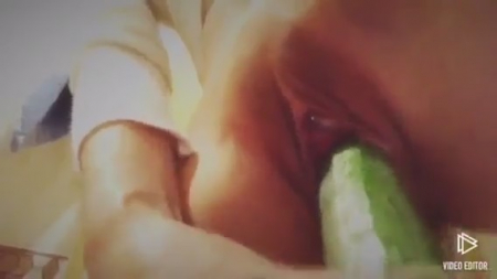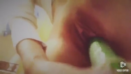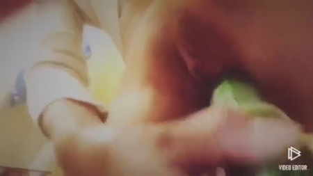 Бесспорно красивая пизденка показана крупным планом не просто так. Ее извращенная хозяйка где-то в интернете на форуме онанисток вычитала, что можно испытывать оргазм от подручных предметов, в том числе и продолговатых овощей. Действительно, если натянуть резинку сверху, подобрать нужный размерчик, то он неплохо заменяет мужской половой орган, предназначенный, в том числе, для удовлетворения похотливых девиц, типа этой. Не понятно как там на счет оргазма, но определенное удовольствие девушка получила, засняв на память первую попытку дрокнуть молоденькую пизденку огурчиком.