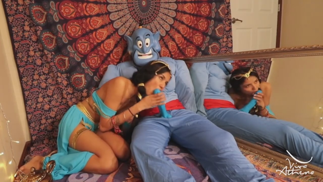 Пока Аладдин покоряет соседние царства и играет в героя, его суженая принцесса Жасмин сильно загрустила, ведь некому удовлетворять королевскую похоть прекрасной брюнетки в красивом восточном одеянии. К счастью, Джинн остался дома, поэтому девушка воспользовалась его лампой, трахнув пизденку носиком лампы перед зеркалом. Откуда-то взялся вибратор, но довольно быстро Жасмин вызвала заточенное мифическое существо, отсосав его синий хуй на полу, а в это время он улыбался застывшей пугающей улыбкой. Конечно простолюдину в белых шароварах они ничего не расскажут.