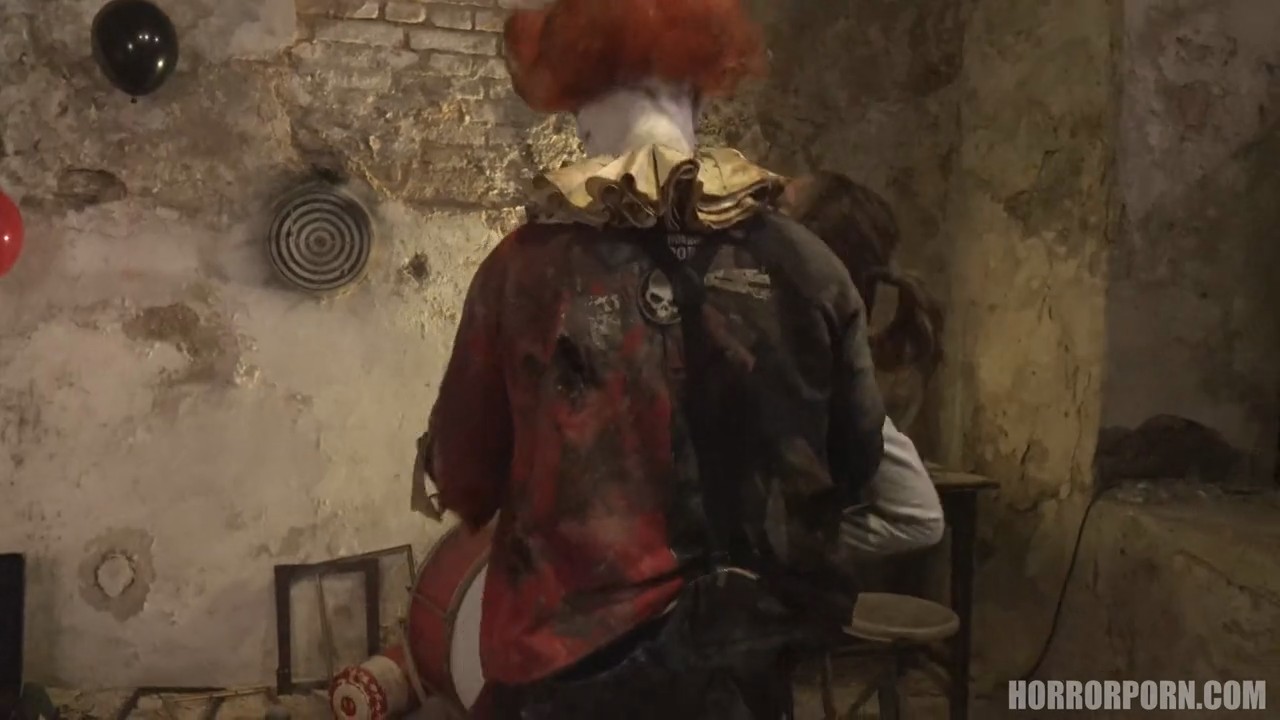 Вместе со своим молодым человеком девушка прогуливалась посреди заброшенных домов. Неожиданно возле старых железнодорожных путей появился мерзкий клоун, угрожающе надвинувшийся вслед за парой. Ребята попытались спрятаться в одном из домов с голыми стенами, но они еще не знали, что один запах духов выдает шлейф для клоуна-убийцы из фильма ужасов. Маньяка интересовала только девушка, ее приятель просто смотрел как ее насилует психопат Оно и боялся подойти, хотя находился совсем рядом, за спиной. Только после оргазма он попытался помочь, получив на прощание машущего рукой клоуна-насильника с вываленным наружу членом, убегая с обконченной подругой.