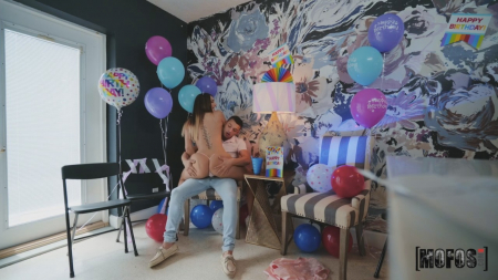 Симпатяга празднует сегодня день рождения в одиночестве. Все еще не покидающее чувство тревоги что кто-то придет с каждой минутой угасает. Придется самой дарить себе подарок, явно что-то эротическое типа самотыка, а может и повеситься нахрен от жизни, когда друзья растерялись с возрастом. Ой, погодите. Кто-то пришел! Это тот самый чувак из френдзоны. Парнишка давно влюблен в именинницу и просто не мог пропустить важный праздник. Именно ему досталась девушка, осчастливленная верным другом настолько, что ему перепало немного сочнейшей пизды, а сама самка оценила половые возможности худого мальчика.