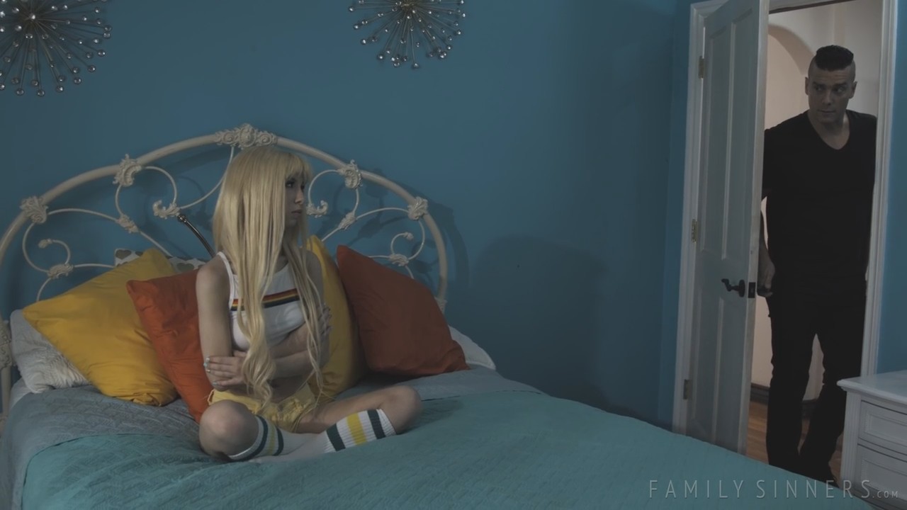 Худышка вернулась домой и первым делом скинула шортики, достав любимый вибратор. Конечно, он сразу был применен по делу, а сзади, пока она не видела, зашел родственник - дядя, которого она сто лет не видела, и, судя по всему, еще столько же бы не видела. Не понятно чем парень так насолил, но даже на разговор она не осталась. Дядька не стал травмировать психику молоденькой засранки, вышел и в этот раз постучался. Девчоночка оделась, впустила и закрылась в своей комнате. Дальний родственник пришел честно рассказать об увиденном. Мелкая будто влюбилась после этого, он так вымахал за прошедшие годы с детства и теперь манит совсем не родственная связь, а нечто более грязное.