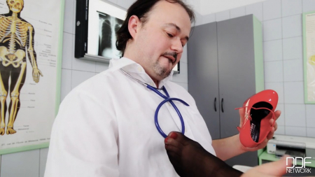 Симпатичная азиатка пришла на прием к гинекологу. Но девушке оказался не нужен обычный осмотр, ведь ей аж до зубного скрежета хочется потрахаться. Сексуальная брюнетка уселась на стол врача и начала дрочить ему ногами, сначала туфлями, а потом ступнями. Когда же мужчина возбудился как следует, он разорвал колготки телке и вошел в нее.