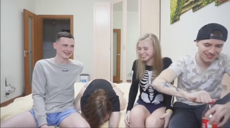 Вода под лежащий камень не течет, поэтому рано или поздно каждой девушке приходится изучать такой странный предмет, как основы минета. И по статистике чаще всего это делают первокурсницы-студентки, которые познают отдельную от родителей жизнь. В том числе и сексуальную естественно, набивая шишки на всем, чем дотянутся. Но эти блондиночки с подачи одногруппников решили запечатлеть свои первые оральные потуги, а их товарищи срубить немножко деньжат, поэтому сосать девахи начали в режиме онлайн и одновременно, почитывая советы из чата от комментаторов.