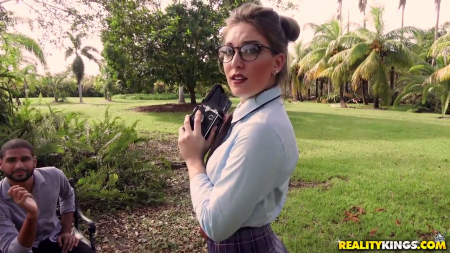 Чувак так долго добивался внимания подруги-фотографа, пользующейся только ретро фото техникой. Тут приперся какой-то негодяй, из-за которого заинтересованная девица прогнала приятеля. Все потому, что к ней в карман попали зеленые хрустящие бумажки, предложенные за общение и кое-что еще. Это кое-что был перепихон. Незнакомец рассказал как прогуливался по данному красивому парку и наткнулся за обворожительную красавицу в очках и короткой юбочке, что теперь не может продолжить жить, пока не "распробует" ее. Хахаль отправился погулять, пока взрослые займутся сексом под открытым небом, используя как ложе металлическую скамейку.