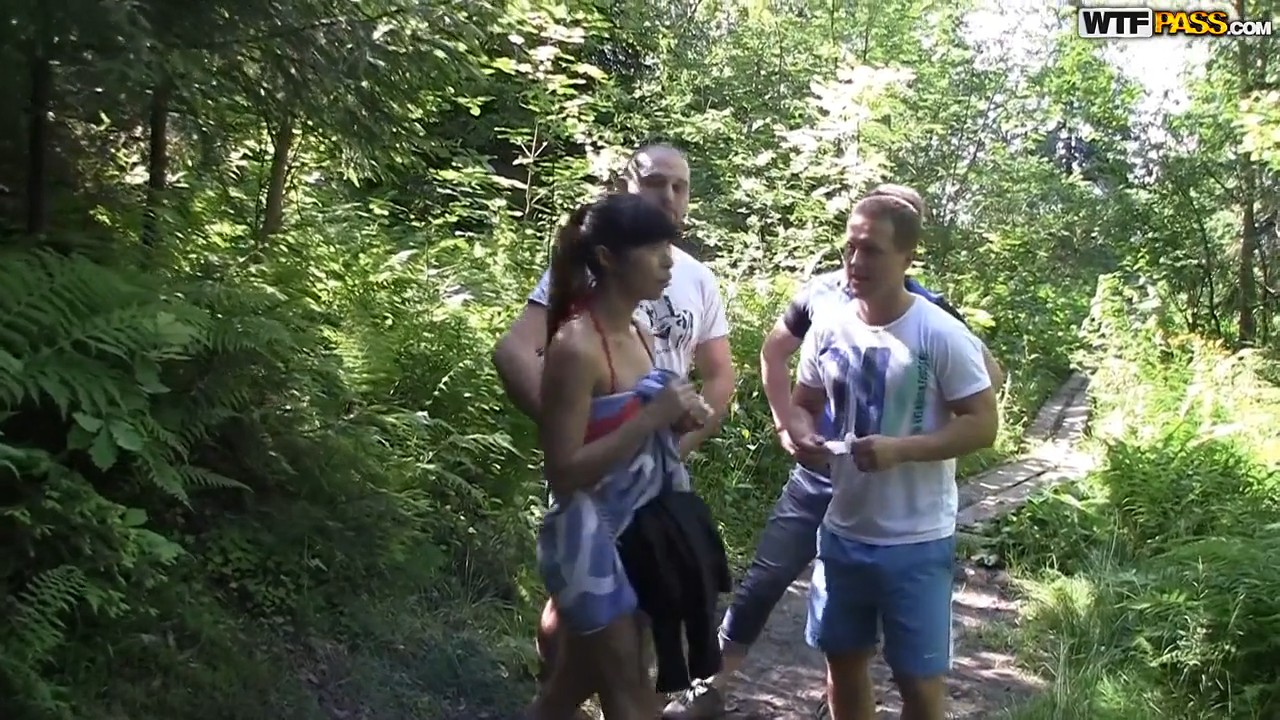 Симпатичная брюнетка с классной попкой попросила трех мужчин о помощи - чтобы они помогли намазать кремом от загара ее спину и как раз таки аппетитную попку. Подразнила, возбудила и хотела уйти. Но не тут то было. Трое возбужденных мужчин просто так не отпустили прелестницу. Парни догнали девушку, привели в номер и там хорошенько отымели во все щели одновременно.
