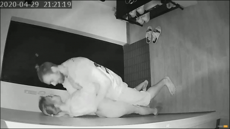 Стоило только супругу уснуть пьяным, к жене пришел сосед. Он здоровый бык и, если проснется рогоносец, сможет постоять за себя и за даму, которая присела отсосать желанному гостю. Совсем наглеть и проходить в комнату любовники не стали, занявшись сексом возле стены в коридоре, где снимают обувь. Девочка шикарно выгибает спину и она так довольна визитам друга, каждый день скучает, а со своим козлом забыла что есть адекватно потрахаться. Закончив дело, соседушка поцеловал изменщицу и побежал домой, ведь так-то он выходил покурить, домашние не поймут, ведь это двойная неверность. Все равно развод близок: последняя измена попала на скрытую камеру мужа.
