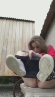 Молодка в спортивных штанишках пошла подышать сигаретным дымом на скамейку возле дома. Она не отрывается от телефона, но в этот раз сделала исключение, все равно используя смартфон для записи коротенькой мастурбации для своего молодого человека. Каждому парню приятно получать милые подарки, тем более от таких хорошеньких пошлячек, знающих толк в развлечениях. Шликала-шликала, а сигаретку так и не докурила. Запомните: курение вредит вашему здоровью и ни в коем случае не пробуйте, а если курите - выбрасывайте в урну и тогда жизнь станет чище и радостней! Ну и снимайте горизонтально.