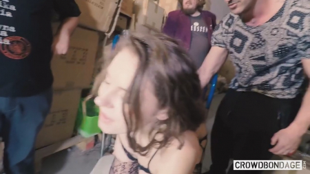 Внутри небольшого склада наподобие гаража собрался разношерстный народ и даже еще пару девушек, одна из которых принесла на шоу свой вибратор. Кучерявая красотка в интервью призналась, что ее возбуждает такая фантазия и она уже думала о сексе перед посторонними людьми, но никогда такое не пробовала в реальности. По началу ее руки были связаны, но потом им дали волю, иначе она не сможет в полной мере получить удовольствие и дать его другим. Любой желающий имеет возможность трогать руками красотку из Чешской Республики и даже бить слабым током. Весьма интересный опыт получился, зрители довольны, актриса довольна и мы с вами тоже.
