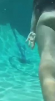Симпатичная брюнетка словно настоящая русалка плавает с открытыми глазами. Когда она добралась до оператора, то быстренько соснула его член, глядя в камеру. Тут же она поплыла обратно, разворачиваясь на 360 градусов показывая неплохое тело. Воздух кончается, значит пора всплывать. На этот моменте съемка отрубилась, скорее всего. Видео чисто по приколу, не имеет смысловой нагрузки, сраных полминуты. А вот телефон с возможностью снимать под водой - это нечто. Хотя вероятнее он был засунут в специальный кожух.