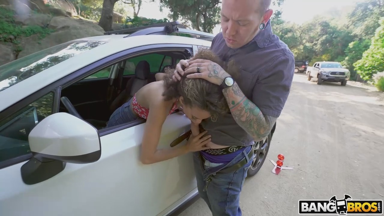 Друзья катаются по загородной дороге и обсуждают девчонок, которых здесь ну очень много. Доказательством тому одна из таких попросила помочь с машиной, которая заглохла по пути и не реагирует на ключ зажигания. Остановившийся водитель ну вообще не механик, потому просто попялился под капот и не смог выдать вразумительного предположения. На самом деле негритяночке нужно совсем другое, она высунула голову из окна и попросила хотя бы пососать, а лучше поебать ее прямо на тачке и рядом на земле, да где угодно, лишь бы это сделал кто-нибудь. Товарищ с камерой поддержал идею и остался в стороне смотреть как приятель натягивает шикарную бейбу на рожок.
