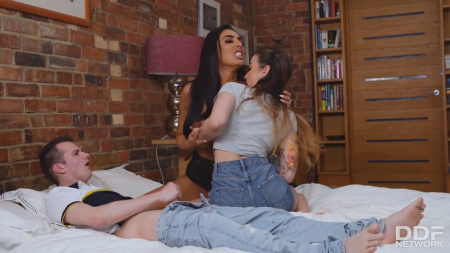 Молодой человек с возлюбленной милуются в постели, по чуть-чуть приближаясь к соитию. Вот уже подружка начала заглатывать, но ее взгляд зацепился за красные трусики, торчащие из-под подушки. Парень сразу заявил, что не знает откуда они взялись. После этого поднялся большой скандал, не давший мачехе разговаривать по телефону. Она тотчас поднялась к ним в спальню, совершенно не обращая внимания на голого пасынка, на которого кричала девушка. Оказалось, что пиздюк свистнул белье для своих фантазий и это не самый хороший поступок. Тогда сисясто-губастая дама дала на выбор два варианта: либо он ебет сразу обеих, либо ситуация в малейших подробностях будет описана отцу. Мелкий воришка получил прощение от своей второй половинки, удивленной странностями данной семейки.