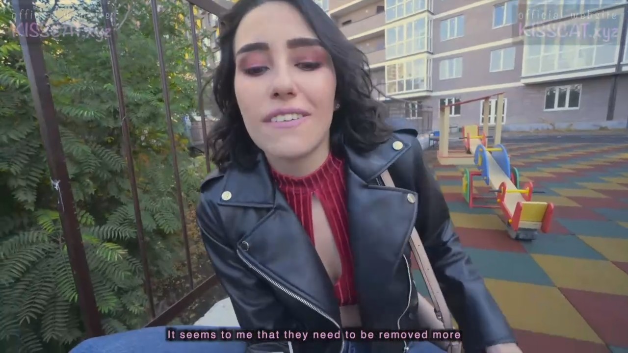 На перекрестке стояла милая девушка в кожанке, к ней подошел парень с камерой, желавший поговорить. Незнакомка ждала такси чтобы добраться до универа. Этот прохожий соврал, что тоже туда направляется и предложил подвезти, якобы его мерседес стоит рядом во дворе. По пути он разговорил веселую брюнетку, которой признался, что никакой машины нет и ему просто хотелось познакомиться. Такой как она не нужна учеба, все и так будет хорошо, уж тем более не всрался матан. Чувак рассказал как снимает фильмы для взрослых и новоиспеченная подружка стала новой актрисой. Подыграв пикаперу симпатяга показала сиськи, потом еще раз и согласилась пройти с детской площадки на лестницу, прилегающую с улицы к одной из жилых высоток. Так, оставшись с ночевкой у подружки, студентка не доехала до универа на следующее утро.