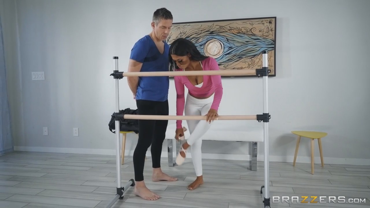 Впереди межнациональные выступления, а мулатка все еще не может воспроизвести простейшие движения. То ударится грудью о брусья, то слишком низко поднимет ногу. За очередной тренировкой ее застал тренер, отругав за то, что она все делала неправильно. Хоть девушка и очень расстроилась, но стремление стать лучшей заставляет идти вперед и слушаться. Для начала она сняла обувь - сразу стало намного легче, меньше скованности. После чего мужчина попросил присесть на скамейку, а сам сделал массаж ступней. От прикосновений к женским ногам, у него встал член, совсем скоро отдроченный темными ножками, потом грудью, ни и остальное прошло внутри. Данный путь привел к результату.