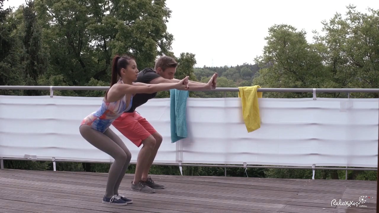 Парень занимается гимнастикой с сексуальной девушкой тренером. Во время гимнастики тренер соблазнила парня - сначала положила его руку к себе на живот, а потом на сочную грудь. Конечно же парень возбудился и получил удовольствие от оральных ласк. А потом вошел в девушку и отымел ее в разных позах.