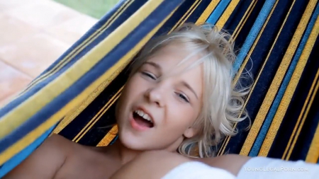 Юная красавица Монро вновь радует нас своим великолепным соло. Девушка устроилась на этот раз в широком гамаке и как и прежде, начала ласкать нежную киску пальчиками.