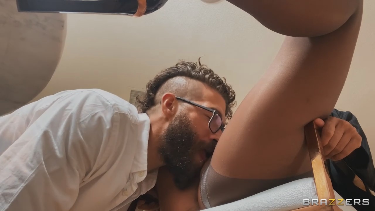 Совещание обещает быть сорванным из-за плохо работающего интернета по беспроводной сети, а шнурок воткнуть нет никакой возможности - в ноутбуке попросту нет ethernet-разъема. Хорошо, что с минуту на минуту должен прийти мастер и устранить неисправность wi-fi. Он совсем недавно работает и не понимает, что нужно проверять в первую очередь роутер. Парень не мог оторвать взгляда от большой груди, а когда залез под стол, та специально раздвинула ноги в колготках, пытаясь обратить внимание на себя. Он присосался к дырочке горячей красотки, а в это время сеть снова появилась и хозяйка попыталась слиться. Ребята страстно трахаются, кончают, сидят довольные на стульях и снова сетка поднимается. Все в чате видят почти полностью голую коллегу, компьютер в спешке захлопывается.