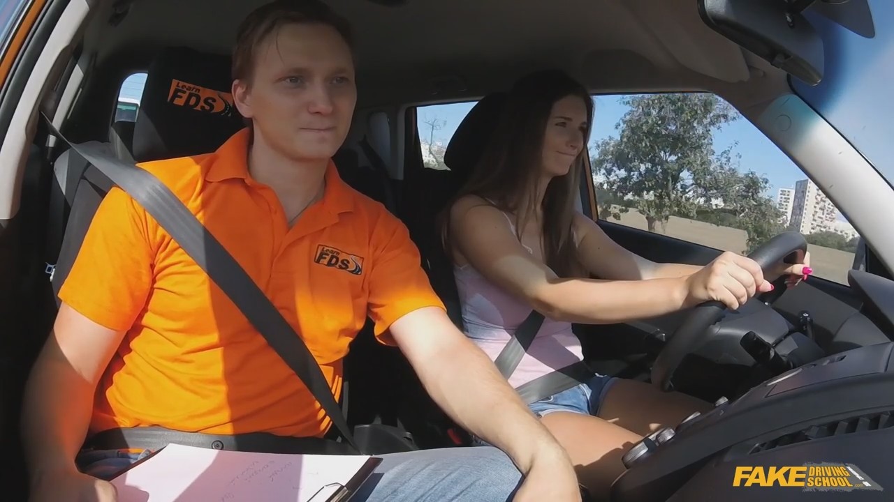 Очень нервозный выдался денек у будущего водителя женского пола. По пути было много препятствий в виде других автомобилей в городе, а вот со знаками совсем беда - красавица их просто не замечает. Это очередной минус в копилку инструктора, делающего заметки на тестовом листе. В пути он то и дело пытался потрогать девушку: то на голую ногу положит свою руку, на поворотах цепляется за грудь, поглаживает плечо, якобы пытаясь успокоить. В итоге он попросил остановиться на проселочной дороге чтобы вынести печальный вердикт - вождение не пройдено, а значит нельзя допустить к экзаменам. Но показанные сиськи и дальнейшие действия внутри салона и на капоте поменяли решение на выдачу в дальнейшем водительских прав.
