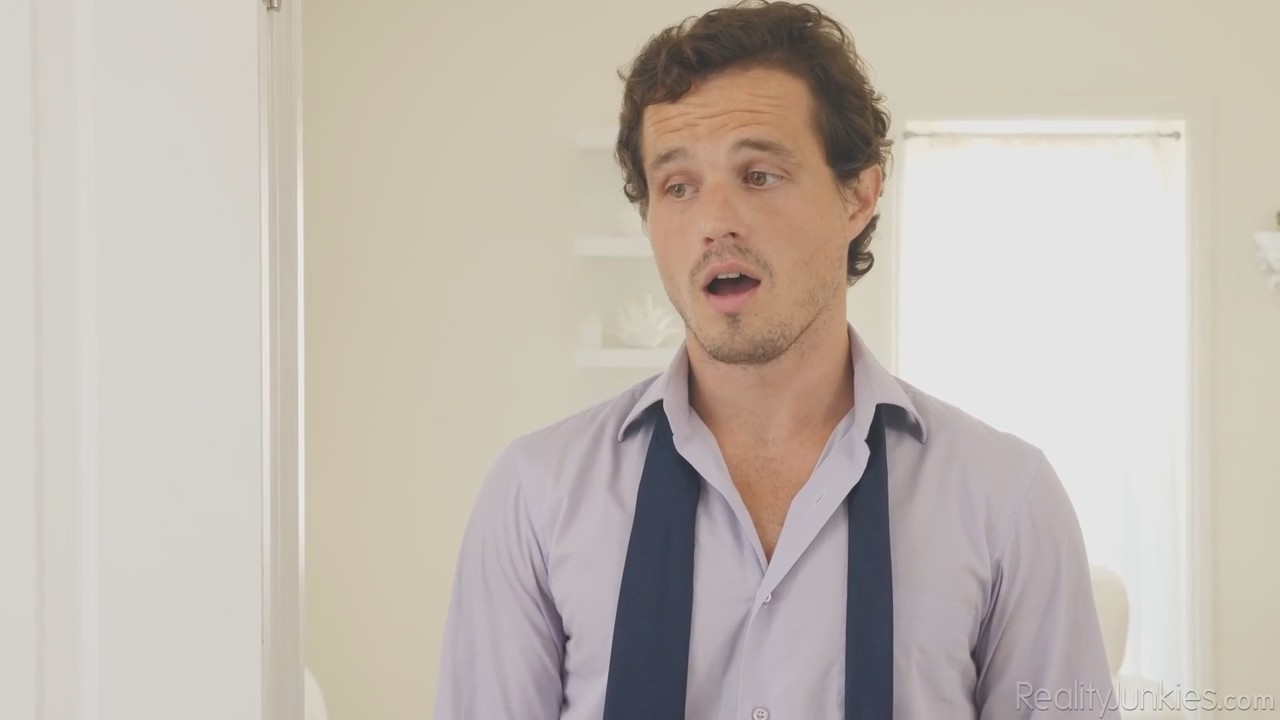 Блондиночка сделала все дела, уложила хозяйского ребенка спать и пошла к ним в спальню лежать на супружеской кровати в вызывающем купальнике, разговаривая с розовым зайчиком по кличке Фаппи и, может быть, немного приласкать свою дырочку, через сдвинутую одежду в промежности. Неожиданно заявился хозяин, который извинился за неожиданный визит и было собирался спокойно покинуть собственную комнату, но блондиночка его остановила, попросив об одной сексуальной услуге. Ему придется изменить жене, но ради такой няши можно немного сходить налево. Девушка громкая, но малого не разбудила.