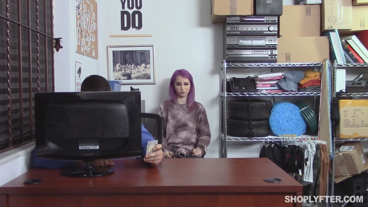 Когда дурная голова не дает покоя, это заканчивается всегда очень печально. Неформальная молодая девушка с крашеными волосами была задержана сотрудниками магазина, в котором продается вообще все, типа их местного Walmart. Воровку небезосновательно увели в подсобку к охраннику, который дал время на раздумья, а потом взялся за трубку звонить в полицию. Почему-то девка занервничала и дала себя пропищать сканером. Она уже стоит в трусах, но ничего нет. А если проверить еще раз? О, вот и часики apple watch нашлись испачканные пиздой. Ну теперь точно этой суке крышка! Хотя стойте, она согласна отдаться незнакомому мужчине на его столе под запись видеокамер (которые будут удалены на всякий пожарный). Все кончено, а теперь пусть проваливает нахер и больше не попадается на глаза!