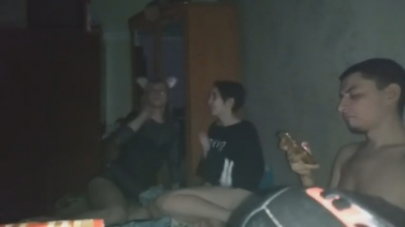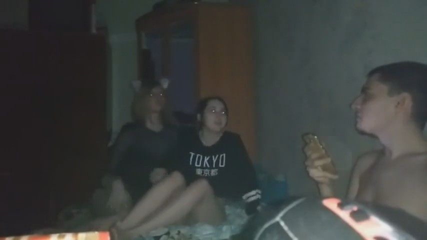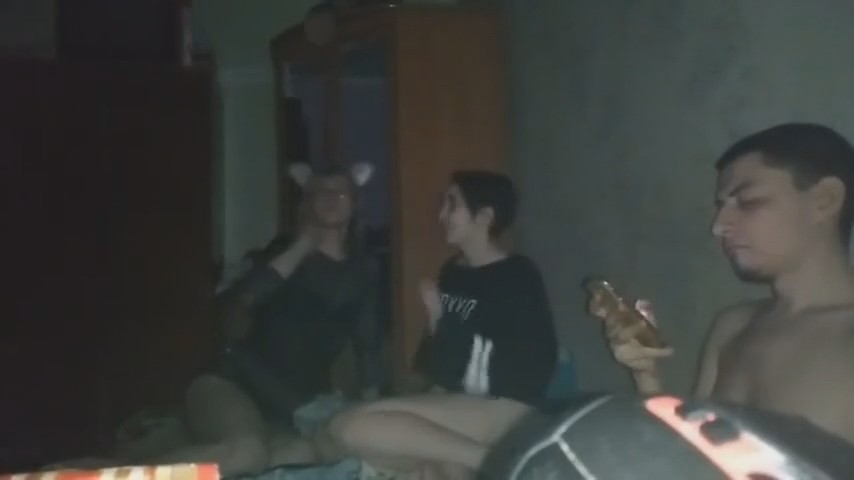 Негордый паренек остался с другом и двумя девушками после тусовки, все достаточно пьяные чтобы заняться свингерскими делами на съемной квартире ночью под включенную музыку. Темненькой больше всего хочется: ходит в одной футболке без трусиков, раздвигает перед телефоном ноги, подруга в очках ей дрочит писечку, а потом сразу вставляется пенис. Самое интересное, что это телка оператора и трахать его "любимую" собирается друг, а сам он лишь дал пососать, восхищаясь красотой классной девчонки - частой участницей домашних вписок. Ну для братика ведь не жалко, ага.
