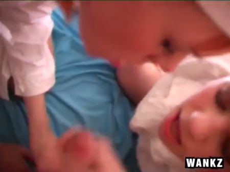 Медсестры пытаются понять отчего же час назад у пациента была температура 39.5. Сейчас он выглядит достаточно бодрым. А не пытается ли он обмануть?! Отказывается от обследования, его уже начали уговаривать две молодые врачихи, даже живот потрогали - нигде не болит. А вот парень без трусов долго обламывался дать стянуть с себя одеяло чтобы провести полное обследование, но все же рыженьким девчонкам удалось это сделать и они обе сразу потянули голову к его паху. Нет, не чтобы попытаться там что-то рассмотреть, а только взять в рот. Как бы там ни было, будет выписан больничный на 3 недели.
