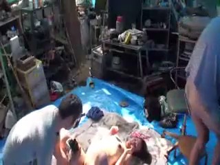 Некоторые детские травмы начинаются еще до рождения. Например, тут ебанутый муж-япошка привел супругу бомжам, отчего те вообще выпали в осадок - первый раз такое, чтобы пьяным грязным мужикам кто-то привел бабу, в которую из-за положения можно кончать сколь угодно внутрь. Хотя тут произошел смешной факап: кто-то из бездомных снял со шлюхи трусы и увидел на них нечто мерзкое, что даже его передернуло, показав в камеру поближе. Но это не остановило и бомжик вместе с друзьями дал отсосать и немного выеб при муженьке шмару, которая потом вырастит такую же или даже еще хуже.