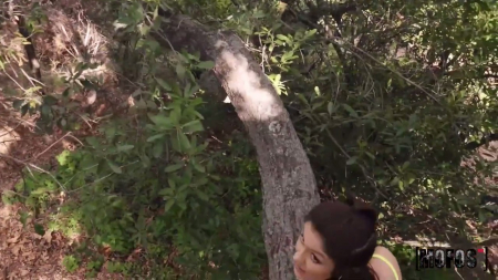 Прогуливающийся по лесопарку мужчина заприметил сидящую на дереве симпатичную девчушку. Она все время просила говорить потише, ведь она прячется от парня в синей кофте - это ее бывший кавалер, который уже достал. Когда тот подошел поинтересоваться у нашего героя не видел ли он девушку в коротких шортах и топе, тот сорвал якобы она прошла мимо этого дерева и спустилась ниже. Девушка попросила забраться к ней, если незнакомец хочет знать почему она тут прячется. С трудом забравшись повыше, прохожий выслушал историю про бывшего, взамен за тишину получив прямо здесь минет, а когда экс-бойфренд точно ушел, латинка из Колумбии дала ему возле камней на земле.