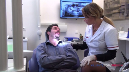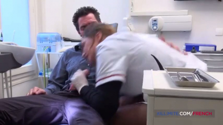 Мужчина не собирался сегодня ничего показывать врачихе кроме больных зубов. Медицина умеет все, особенно немолодого француза удивило, что работает тут сексапильная баба в белом халате, очень приветливая и явно отдающая сексуальностью за километр. Неизвестно что поспособствовало, но она достала член пациента и стала его наяривать ротиком, а потом они поменялись местами и к концу вместо вагины на пенисе мужчины оказалась женская попка. Это какой-то промо ролик, потому часть моментов вырезана, а окончание на сиськи закрыто конечной заставкой.