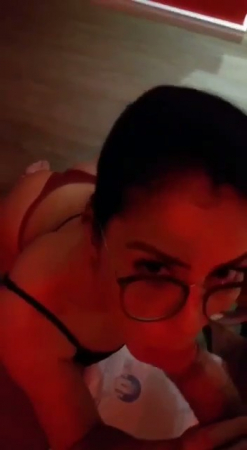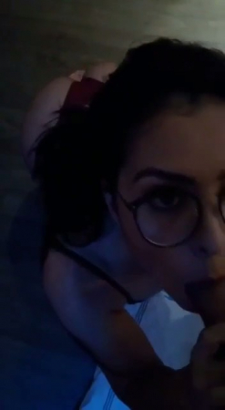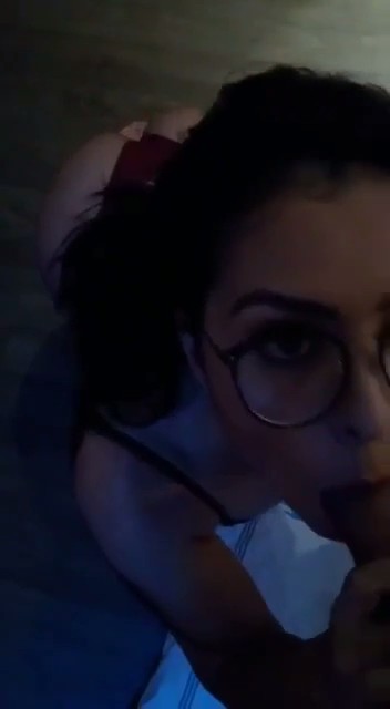 Молоденькая жена всегда рада доставить удовольствие мужу. Она прямо на коленках приползла к господину чтобы заглотить его наживку под присмотром камеры телефона в вертикальном положении. Червячок оказался поистине вкусным, сочным, может быть, даже сытным. Всего на пару минут парень записал видео с милой в очках, ее старания. Под конец она очень сильно проглотила до бритых яиц, что даже от щекотки гортани немного закашлялась и струйка тугой слюны осталась прозрачным мостом между ротиком и пенисом.