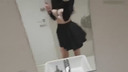 Как только наступил вечер, некая девушка с телефоном прогулялась в белоснежный туалет заведения. Магазин это, забегаловка, ТЦ или еще какое место, нам не известно. Тут очень чисто, даже снять трусики и кинуть их куда-нибудь - дело не страшное. Малышка с телефоном в руке, который снимает отражение в зеркале, просунула руку в трусики, обнаружив там достаточно влажную писечку, которую поспешила приласкать. С собой у нее есть фаллоимитатор в сумочке, сумевший помочь получить удовольствие. Красочно закинув ногу на столешницу раковины, брюнетка помастурбировала немного, а шумящая вытяжка заглушила все исходящие посторонние звуки.