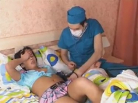 Во время осмотра врач возбудился при виде стройного тела своей пациентки. Врач захотел отыметь ее во что бы то ни стало и даже не собирался спрашивать согласия. Доктор ввел девушке сильнодействующее снотворное, так что симпатяга сразу же отрубилась. Врач вставил сначала в киску спящей девушки двустворчатое зеркало Куско и расширил его в вагинальной дырочке, потом ту же самую процедуру с попкой. Позже мужчина заменил инструмент уже готовым к бою членом.