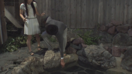 Японочка приняла от ухажера первый серьезный подарок после цветов - радиоуправляемый вибратор на батарейках, который она тут же вставила и пошла гулять с приятелем по улицам, специально подойдя поближе к местному жителю, чтобы подергаться в легком экстазе рядом. Поздним вечером того же для они решили вместе отдохнуть в природном источнике, выполненном в виде бассейна с камнями, где новая игрушка досталась любительнице розового цвета. Парень подрочил киску этим тонким самотыком своими руками, отдал ее подружке пока она сосет и насадил худенькое тело с маленькой грудью на кукан, кончив внутрь гладкой писи первый раз, а в конце еще один.