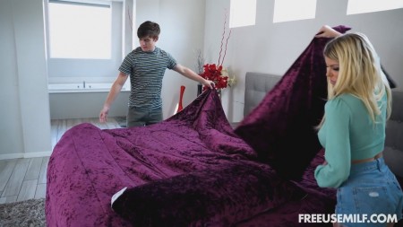 Мужчина привез знакомить своего пасынка с новой мачехой. Она работящая, очень сексуальная женщина, но есть один нюанс: по факту это дичайшая шлюха, которая столько раз изменяла мужу при его личном присутствии, что не так сильно намокает киска при виде свежего члена. Муж залип в телефон, а рядом парню сделали минет, после чего он трахнул мачеху на кухне и еще раз в течение дня в спальне. Все это время рогоносец приглядывал за ними, все равно свой хуй толком не стоит и соваться в дырку супруги даже не стоит. Только вот дамочка не пытается делать вид будто ей нравится. Может надоело, что муж постоянно пялится.
