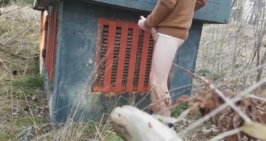 Худенький молодой человек зашел глубоко в лес, надеясь, что ему никто не помешает подрочить на камеру, установленную неподалеку. Для начала он был полностью голый, но холод заставил надеть свитер и продолжить дрочку длинного писюна рукой. Неожиданно сбоку появилась незнакомка в черной куртке и джинсах. Не слышно о чем они поговорили, но девушка подошла вплотную и стала сама гонять шкурку парня. Встав с другой стороны, чтобы было удобно работать правой рукой, она довела поступательно-возвратными движениями шалуна до мощного оргазма. Сучка как появилась, так и спокойно ушла, оставив собираться домой довольного эксгибициониста.