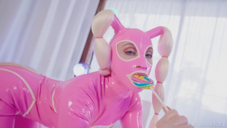 Дрянная телочка расстегнула в промежности латексный костюм и вскоре стала трахать задницу длинным леденцом, которым мастурбация испачканного анала не ограничилась. Дальше в ход пошли мармеладные мишки гигантских размеров и даже "червячки". Для получения кайфа шлюхи с белыми косичками этого точно мало и в ход идет трах-машина с острым наконечником. Дабы было еще лучше, извращенка теребит клитор и тут уже не выдерживает голый оператор, дав отсосать шлюшке в розовом латексе свой перенапряженный хуй, кончивший за несколько минут. Кобыла же продолжила сношать попку электрической игрушкой стоя раком.