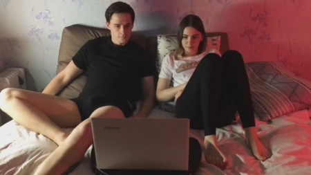 Парочка русских студентов, мальчик и девочка, собрались вместе посмотреть кинцо на ноутбуке, расположившись на кровати в метре друг от друга. Парень постоянно что-то комментирует с экрана, а подружка ему поддакивает, а сама думает как бы так извернуться, чтобы ему отсосать и не остаться в шлюхах. Сперва она просто провела рукой по члену через трусы, потом приложила больше усилий. Несмотря на просьбу не отвлекать, она решила взять в рот инициативу, сделав из маленького сморщенного писюна достоинство побольше. Скучное кинцо отключили и телочка, пососав крупным планом, приподняла футболку, чтобы ей кончили между маленьких сисек. В конце ждут неудачные дубли как в комедии с Джеки Чаном.