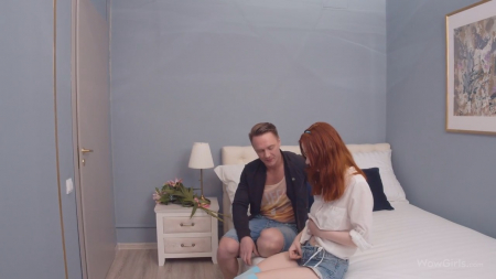 Чуть ли уже не в слезах молодая рыженькая барышня сидела на скамейке во дворе дома, где договаривалась встретиться со своим парнем. Она пытается дозвониться ему в момент, когда он вбегает через арку с прекрасным букетом цветов для прекрасной подружки, которая быстро перестала плакать и пригласила к себе. 8 марта отличный праздник, чтобы первый раз дать бойфренду, познакомить со своими умениями и просто отлично провести время. Без лишней болтовни они красиво занялись любовью на кровати, даже сперма на личике не помешала поцеловать худенькую малышку в щечку.
