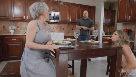Накаченный здоровяк привел домой трансвестита. Он уже как-то рассказывал мамочке, что является бисексуальным товарищем и она его приняла таким, какой он есть. Оставив "девушек" пощебетать, он возвращается, чтобы втроем сесть за обеденный стол, под которым мамочка отсосала трансику, а чтобы выпереть отсюда сыночка, позвонила ему на мобильный телефон. В это время членодевка с проколотыми сиськами успела отлизать короткостриженной красавице под столом. Ничего не стесняясь, они потом ушли в спальню, где громко перетрахались. За этим занятием их застал сынок, не проявивший почти никаких эмоций. Положительных уж точно.